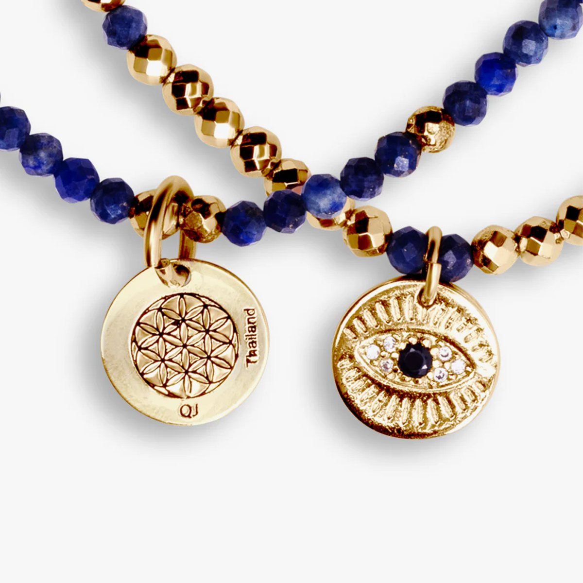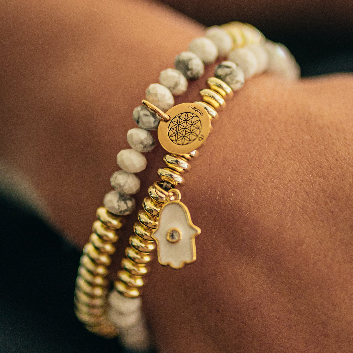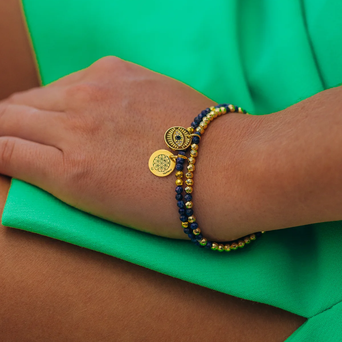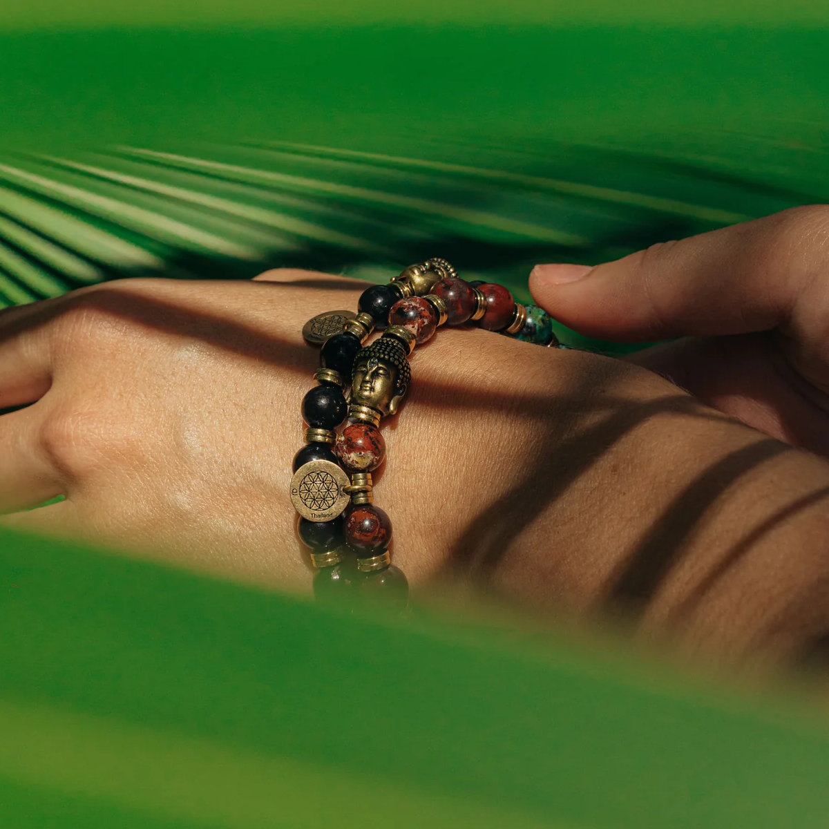 To maintain the integrity of your bracelet, avoid contact with water, perfumes, or harsh chemicals. Clean gently with a soft cloth to preserve the natural beauty of the stones and the Buddha bead. When not wearing this item, keep it in the pouch provided.