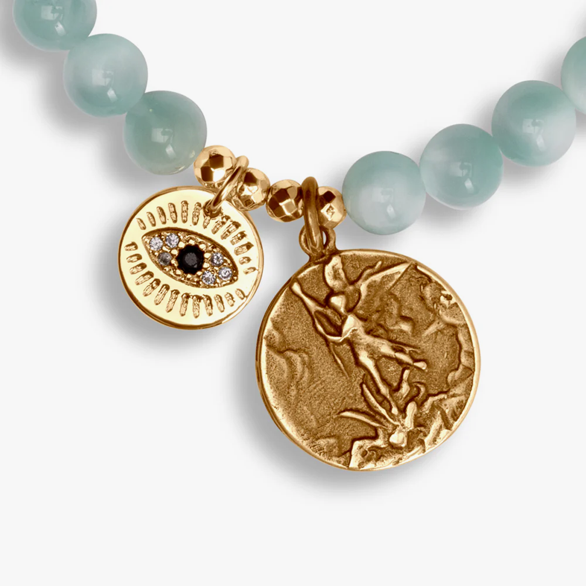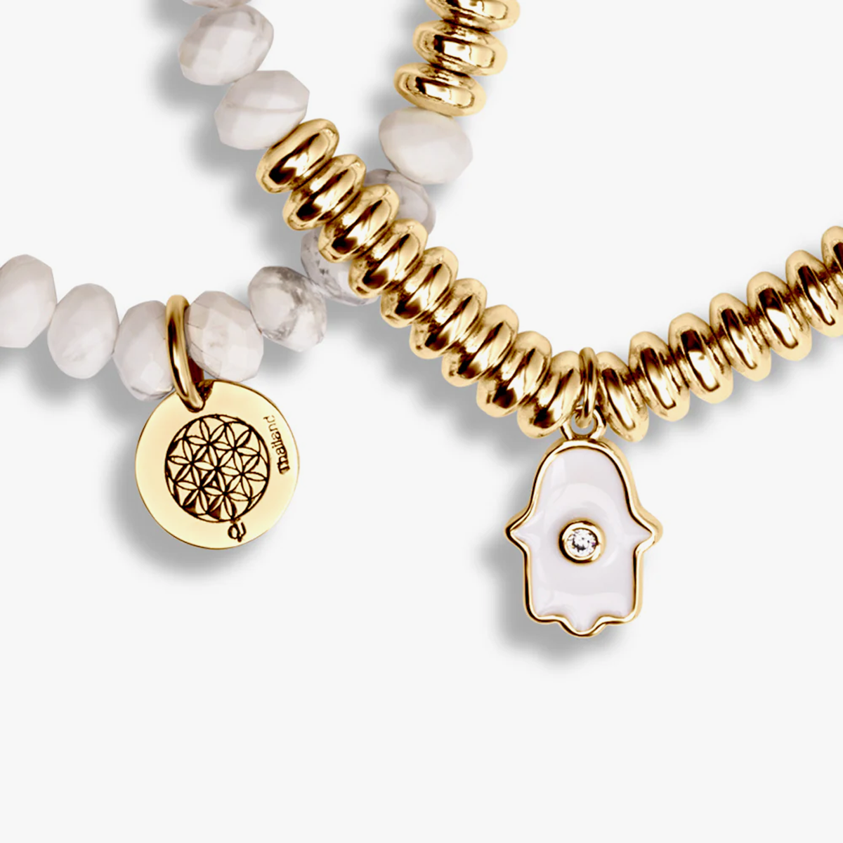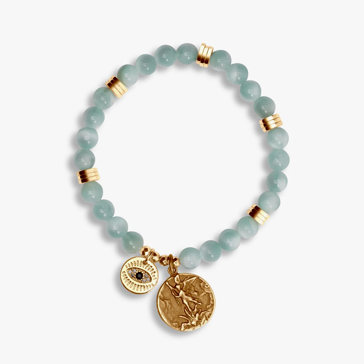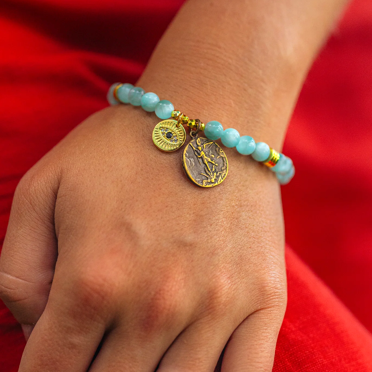 To maintain the integrity of your bracelet, avoid contact with water, perfumes, or harsh chemicals. Clean gently with a soft cloth to preserve the natural beauty of the stones and the Buddha bead. When not wearing this item, keep it in the pouch provided.