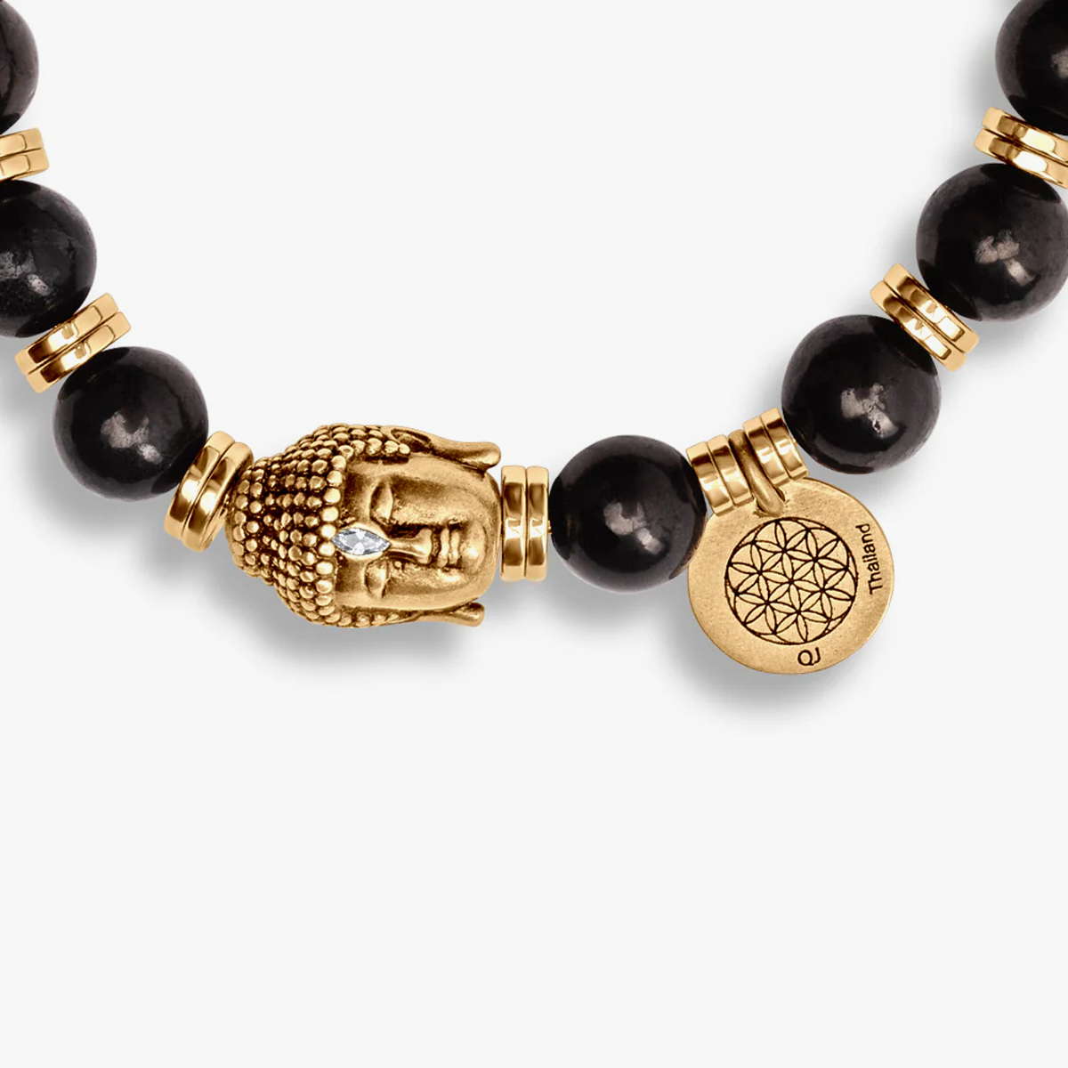 At the center of this design, a Buddha head bead adds a calming, peaceful element to the bracelet, symbolizing enlightenment, mindfulness, and inner peace. This combination of Shungite, hematite, and the Buddha charm creates a harmonious balance of protection, grounding, and spiritual guidance, perfect for those seeking both physical and mental well-being. 🧘