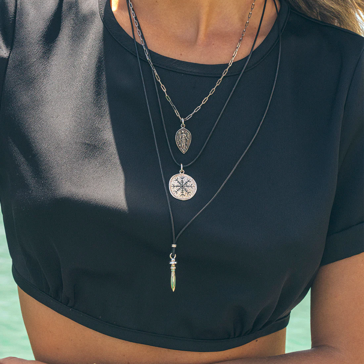 This necklace blends modern elegance with sacred meaning—perfect for layering, gifting, or wearing as a daily reminder of peace, intuition, and protection.
