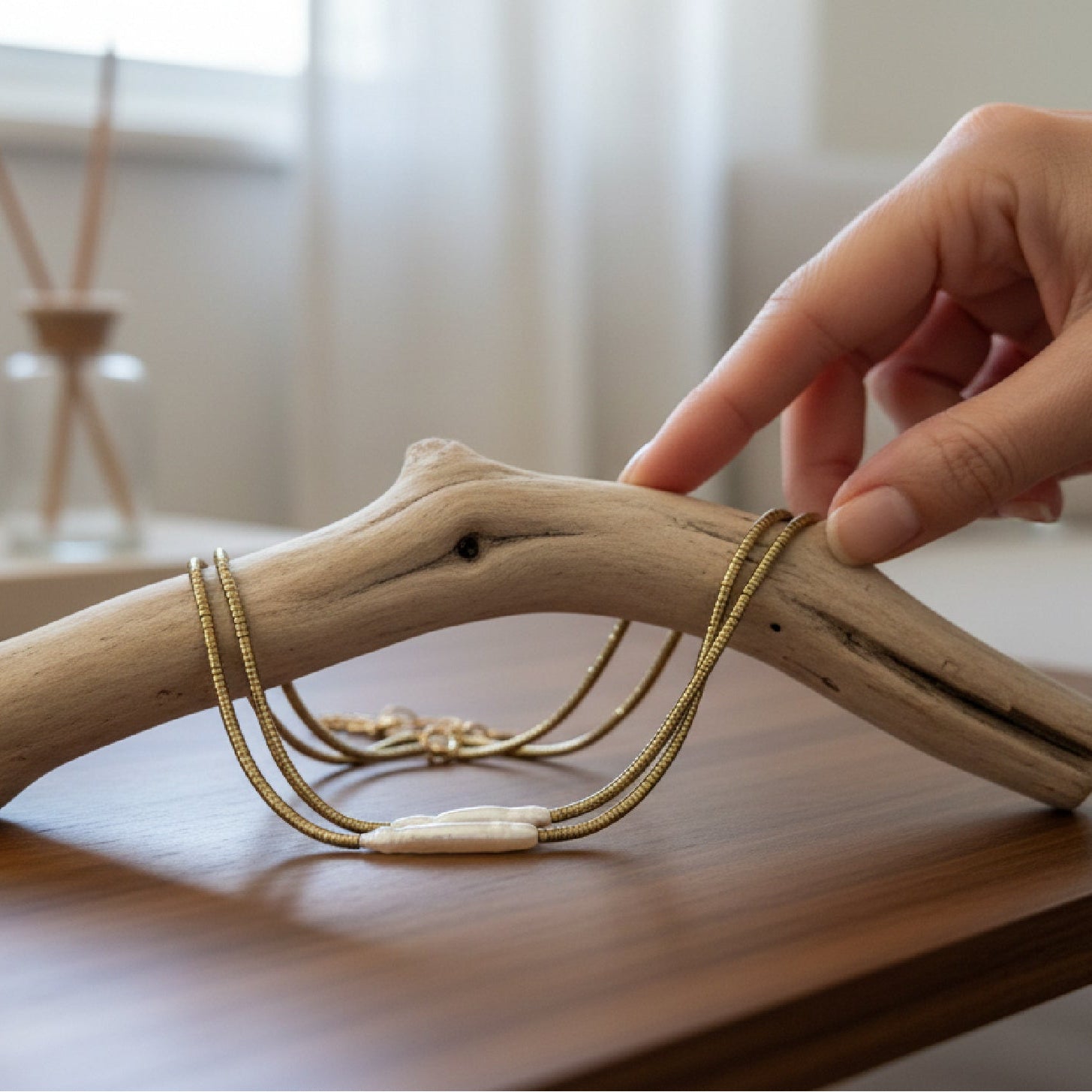 Gently clean with a soft cloth to remove any oils or dust, preserving the luster of the stones.