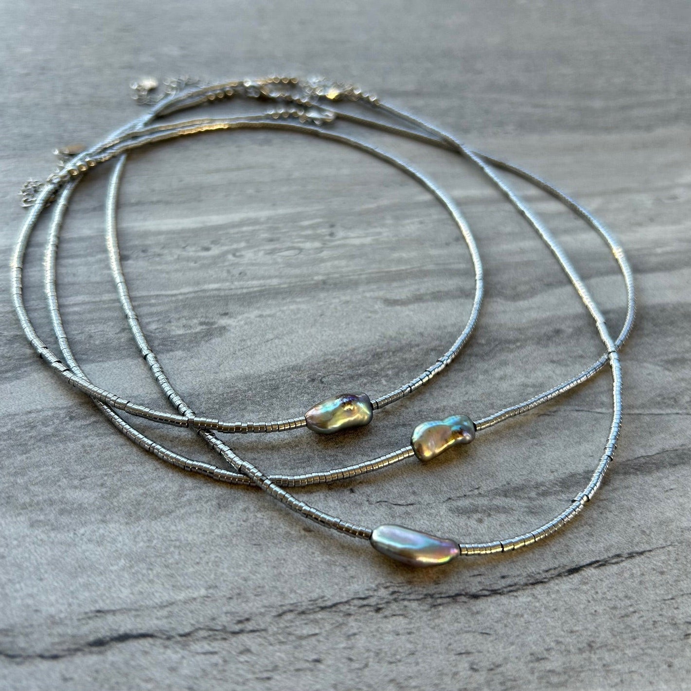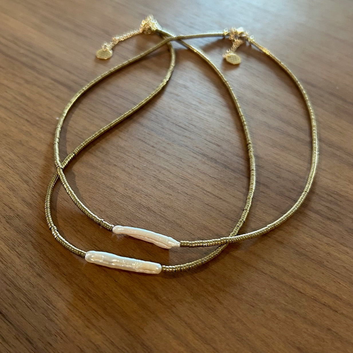 1X6Mmm gold plated Heishi Hematite beads with 18K gold filled 16”+ 2” long extender and lobster closure.
