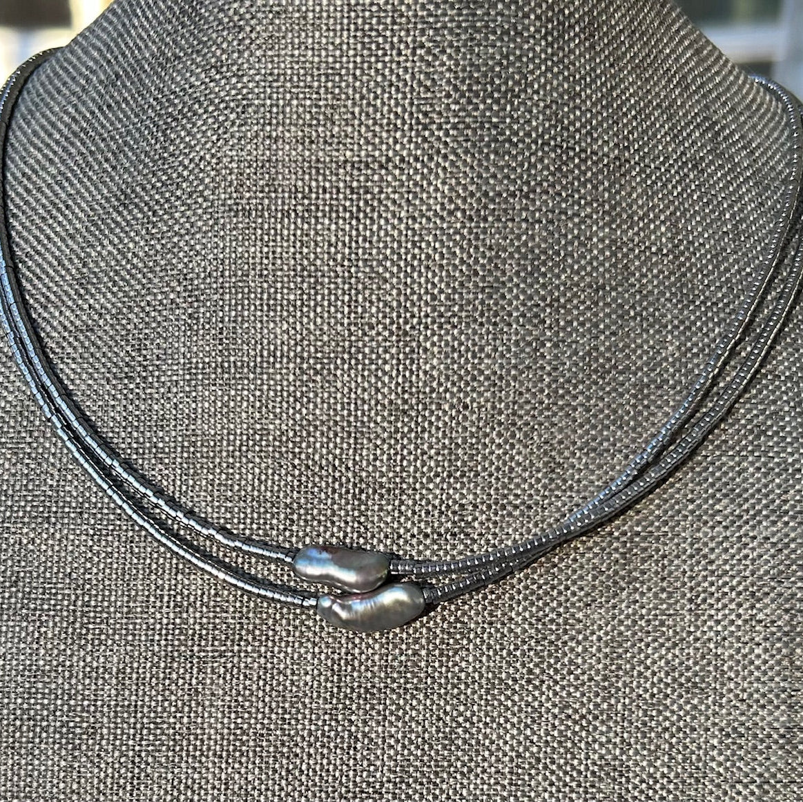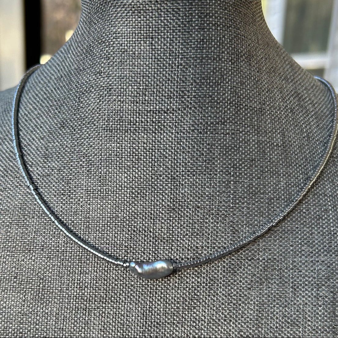 Picture Jasper Heishi Collar Necklace with Hematite Accents