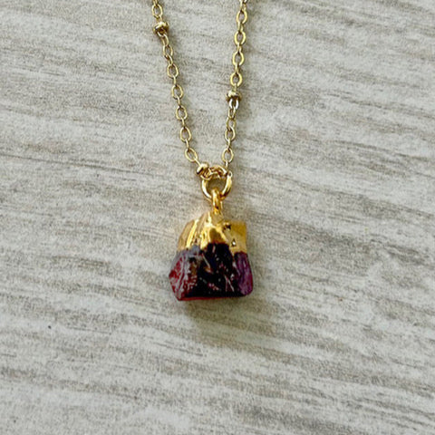 ✨Personalize your everyday look with our Dainty Natural Raw Garnet Birthstone Charm Necklace. A January birthstone that promotes love, protection, vitality, and spiritual grounding.